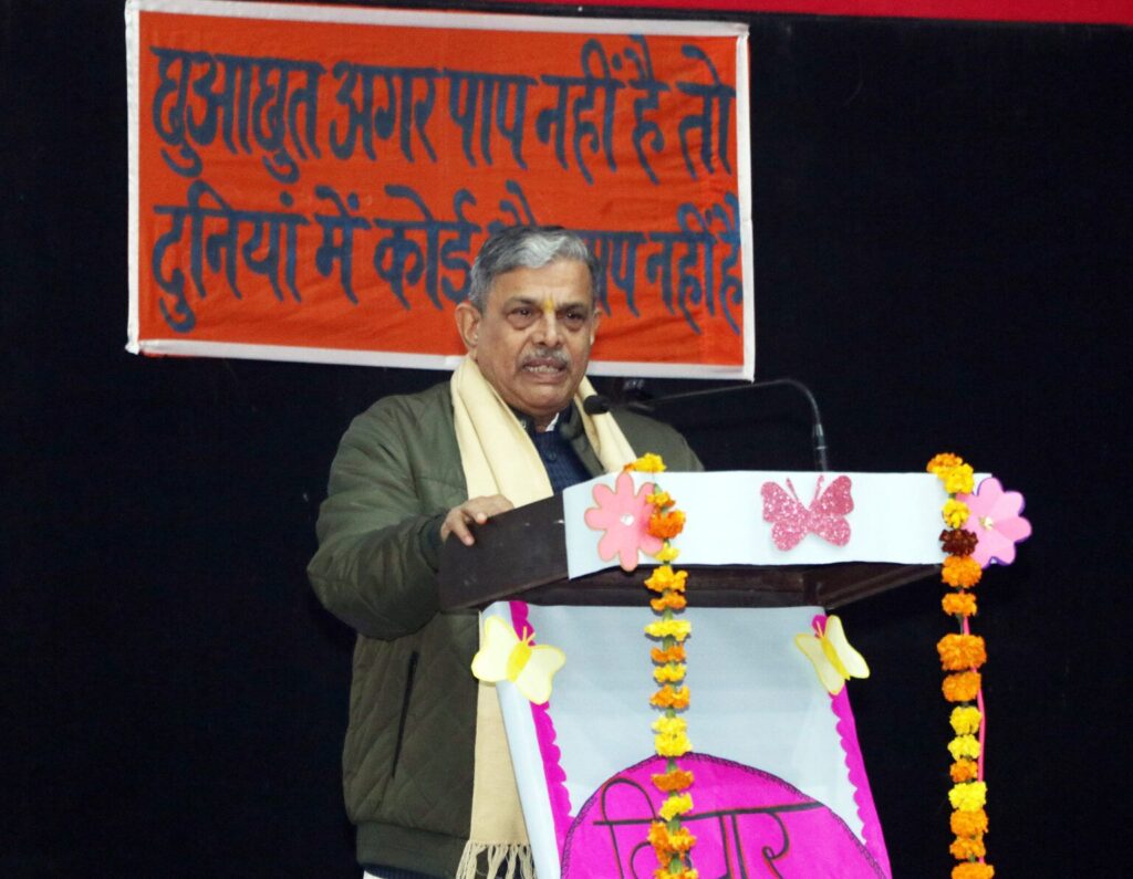 “उन्होंने कहा कि अपने देश पर इतने आक्रमण हुए, आक्रांताओं ने हमारी शिक्षा व्यवस्था, हमारी संस्कृति को खत्म करने के अनेकों प्रयास किए, लेकिन इतने आक्रमणों के बाद भी हम खत्म नहीं हुए तो इसके पीछे जो ताकत है, वह है हमारी परिवार व्यवस्था। विदेशी यात्रियों ने भी अपने यात्रा के अनुभवों में हमारी परिवार व्यवस्था का वर्णन प्रमुखता से किया है। क्योंकि हमारी परिवार व्यवस्था में बच्चों को स्किल व संस्कार दोनों चीजें एक साथ दी जाती रही हैं। हमारे युवाओं में प्रतिभा बहुत है, लेकिन आज हमारा युवा नशे की दलदल में फंसकर पथ भ्रष्ट हो रहा है। पाश्चात्य सभ्यता के प्रभाव में आकर अपनी संस्कृति से दूर होता जा रहा है। युवाओं को नशे से बचाने व संस्कारित करने के लिए सामाजिक, धार्मिक संगठनों व समाज की सज्जन शक्ति को एकजुट होकर कार्य करना होगा।