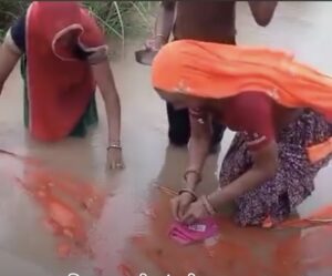 सूखी पड़ी बांडी नदी में पानी आया तो ग्रामीण महिलाओं ने चुनरी ओढ़ाकर किया स्वागत
