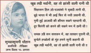 राष्ट्रीय चेतना की सजग कवयित्री सुभद्रा कुमारी चौहान / जन्म दिवस -16 अगस्त 1904