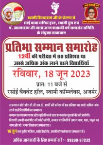 12वीं के प्रतिभावान विद्यार्थियों का सम्मान समारोह 18 जून को
